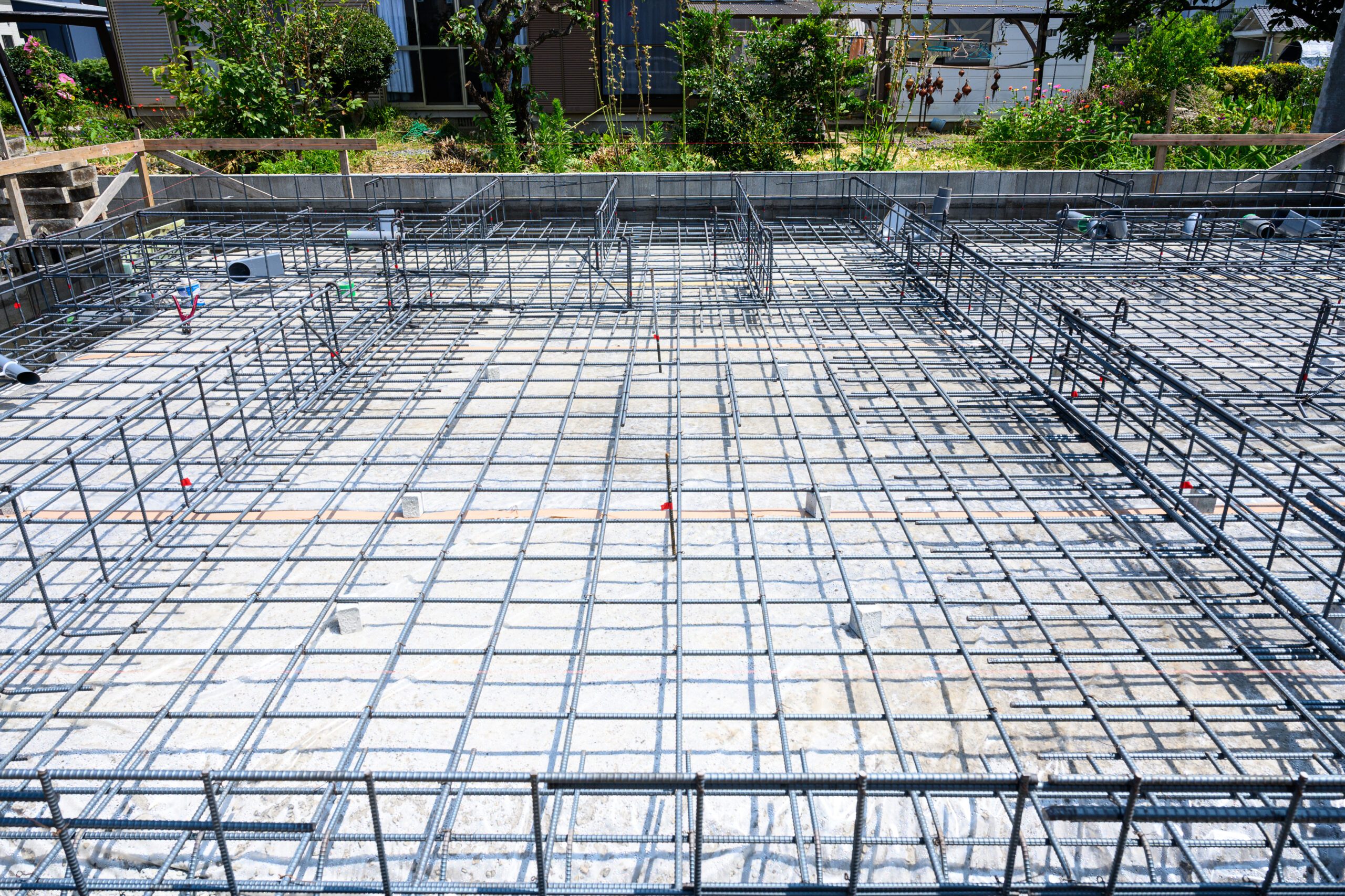 第三者機関により、鉄筋の配置や間隔、重なり等が、設計図通りに施工されているか検査が実施されます。