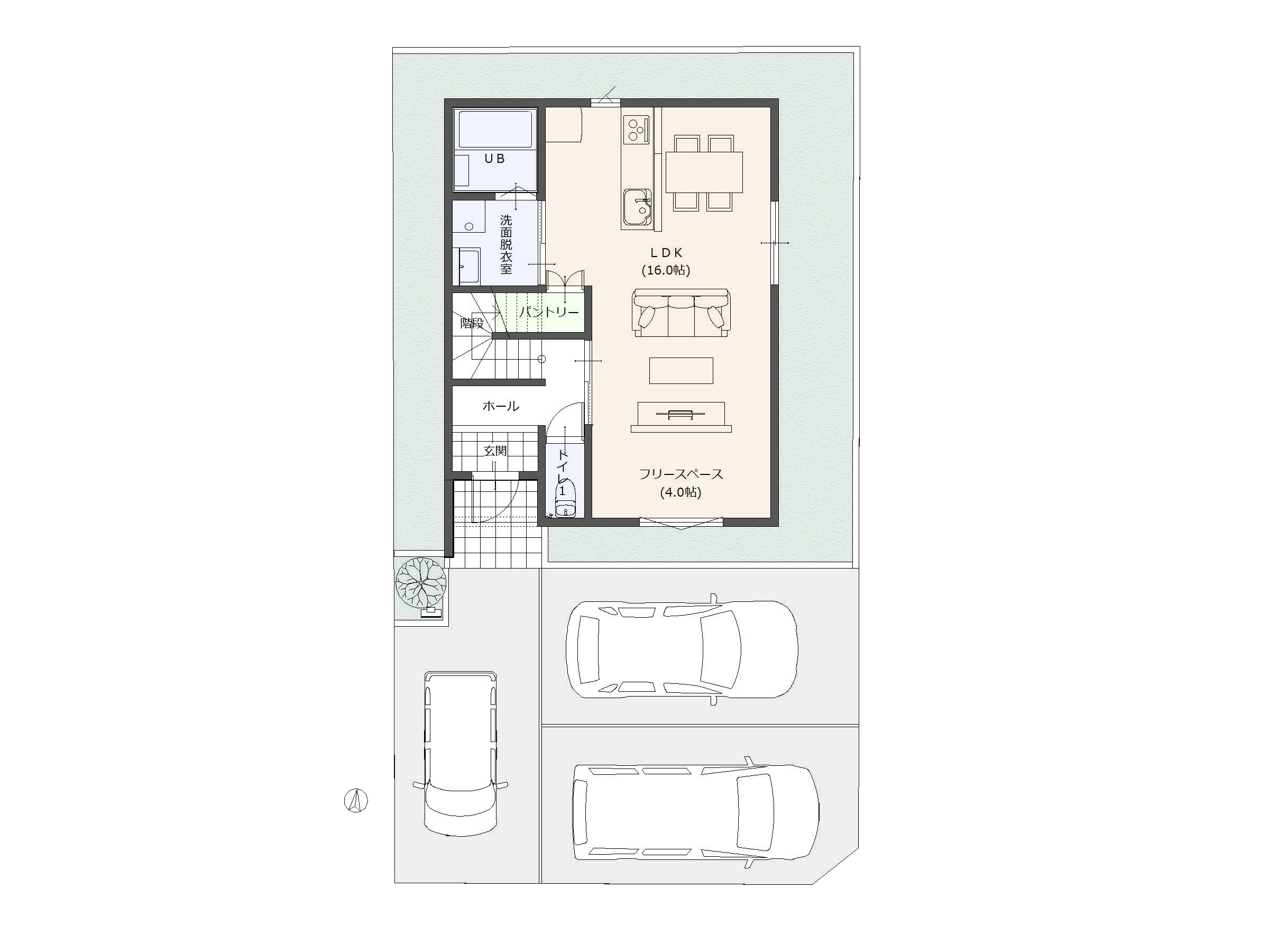 建築条件付き土地1階は広々とした空間を有効活用したアイディア満載設計。リビング学習が主流になりつつある現代、ワークスペースをダイニングへ。2階は各居室それぞれが個の時間を大切に過ごせる広さのファミリー向きプラン。